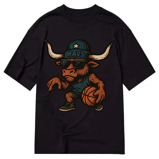 Texas Longhorn wearing Mavs beanie with lone star patch and wayfarer sunglasses - Vintage T-shirt