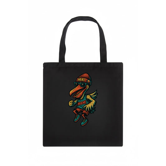 Miami Pelican wearing Heat beanie with sunset patch and wayfarer sunglasses - Tote Bag