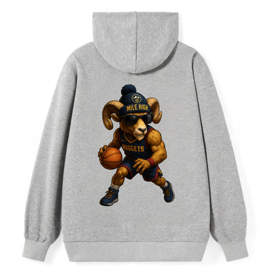 Mile High Bighorn wearing Nuggets beanie with mountain patch and wayfarer - Classic Pullover Hoodie
