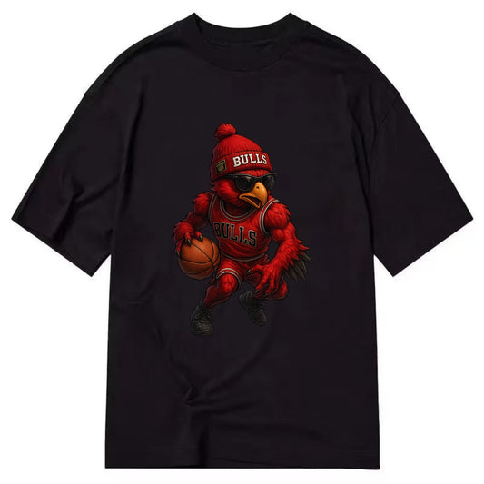 Windy City Hawk wearing Bulls beanie with six rings patch and wayfarer sunglasses - Vintage T-shirt