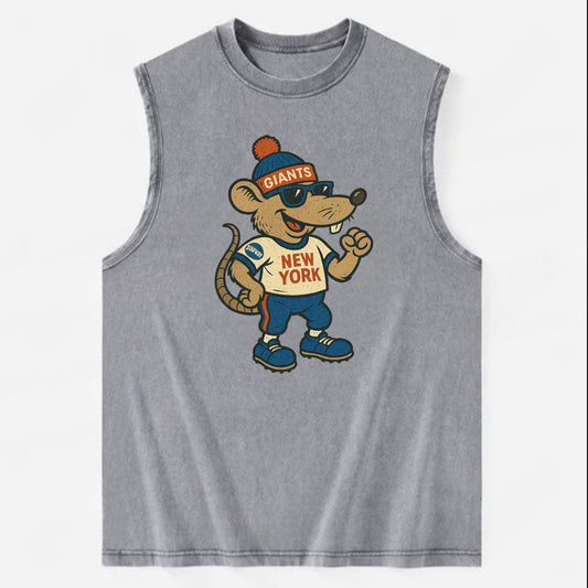 New York Rat wearing Giants beanie with subway patch and wayfarer sunglasses - Vintage Washed Tank