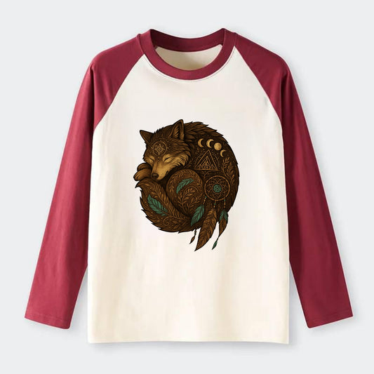 Sleeping Wolf Peace - Raglan Long Sleeve T-Shirt