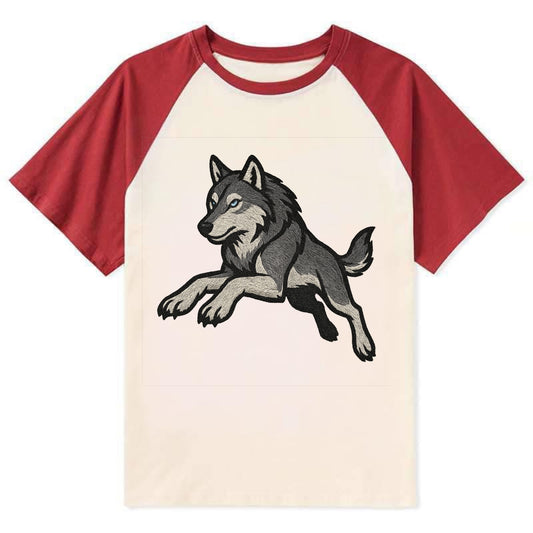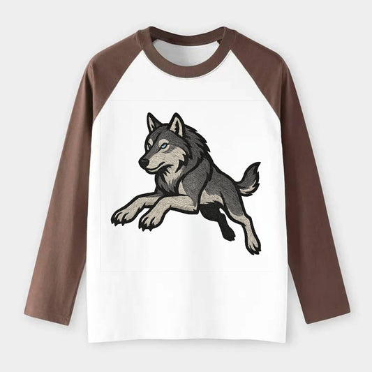 Wolf Leaping Action - Contrast Raglan T-shirt