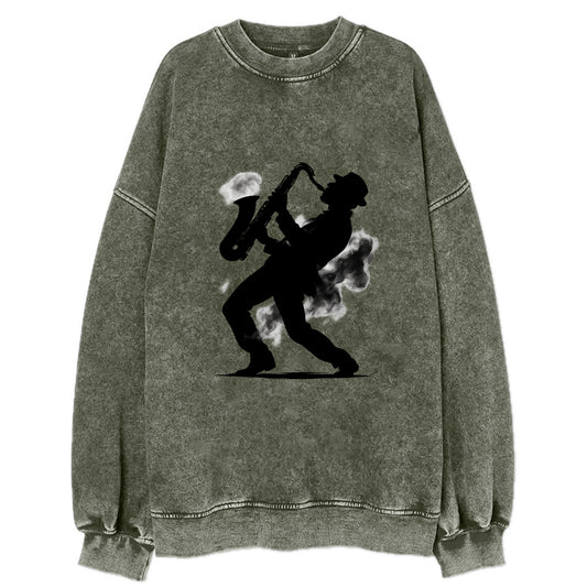 Saxophonist playing jazz in smoky room - Vintage Sweatshirt