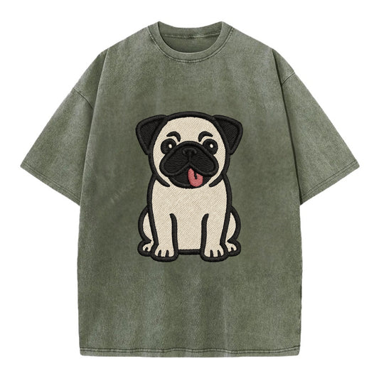 Pug - Tilted head with tongue out - Vint Vintage T-shirt