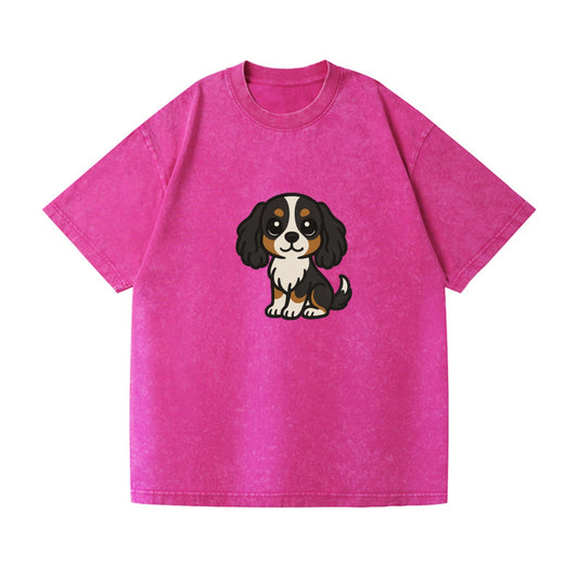 Cavalier King Charles Spaniel Tricolor Sitting Pose Portrait Design Vintage T-shirt