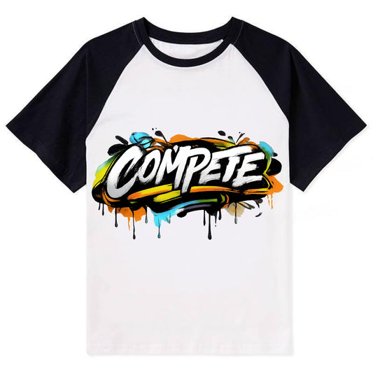 Bold typography design - COMPETE - competitive spirit, love the game - Contrast Raglan T-shirt