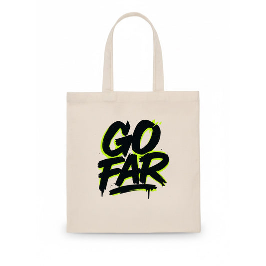 Bold typography design - GO FAR - distance goals, pushing limits - Tote Bag