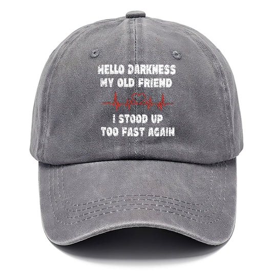 Hello Darkness My Old Friend I Stood Up Too Fast Again Funny Classic Cap