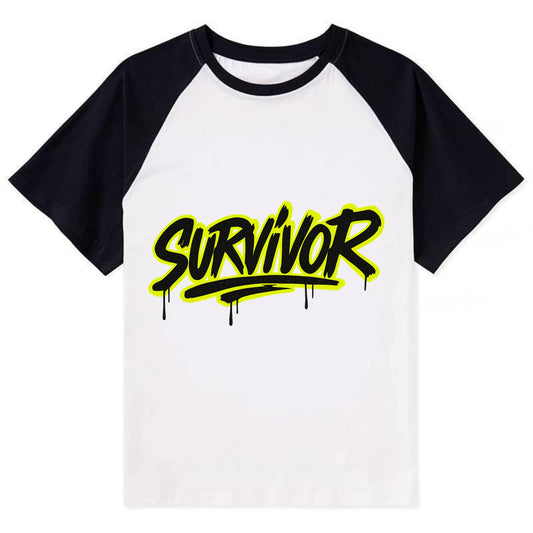 Bold typography design - SURVIVOR - overcomer, still standing, made it - Contrast Raglan T-shirt