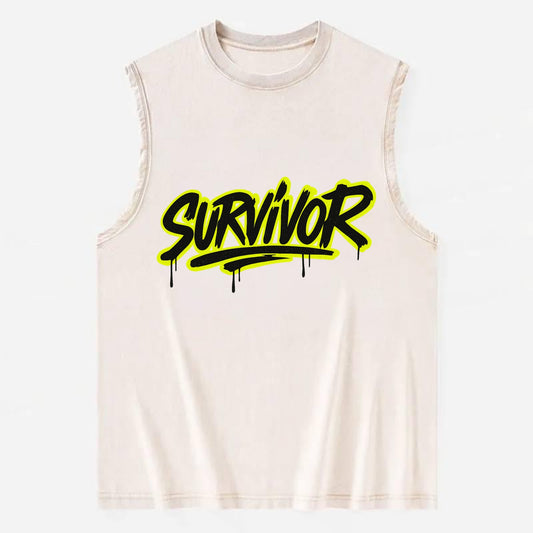 Bold typography design - SURVIVOR - overcomer, still standing, made it - Vintage Washed Tank