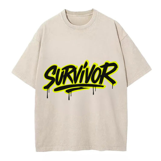 Bold typography design - SURVIVOR - overcomer, still standing, made it through - Vintage T-shirt