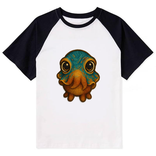 Baby Cuttlefish - color-changing skin, W-shaped pupil, front-facing, - Contrast Raglan T-shirt