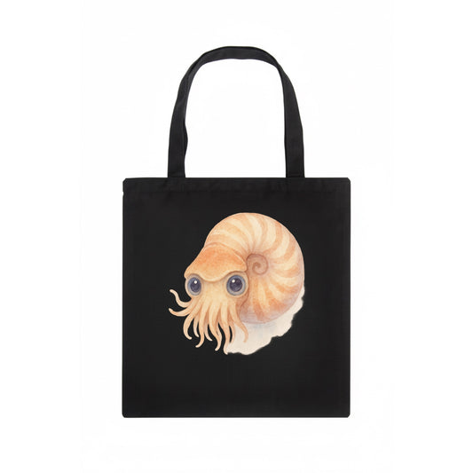 Baby Nautilus - spiral shell, tentacles peeking, ancient eyes, front-facing, living - Tote Bag