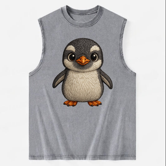 Baby Gentoo Penguin - orange beak, white cap, bright eyes, front-facing, - Vintage Washed Tank