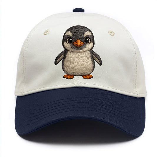 Baby Gentoo Penguin - orange beak, white cap, bright eyes, front-facing, energetic - Two Tone Cap