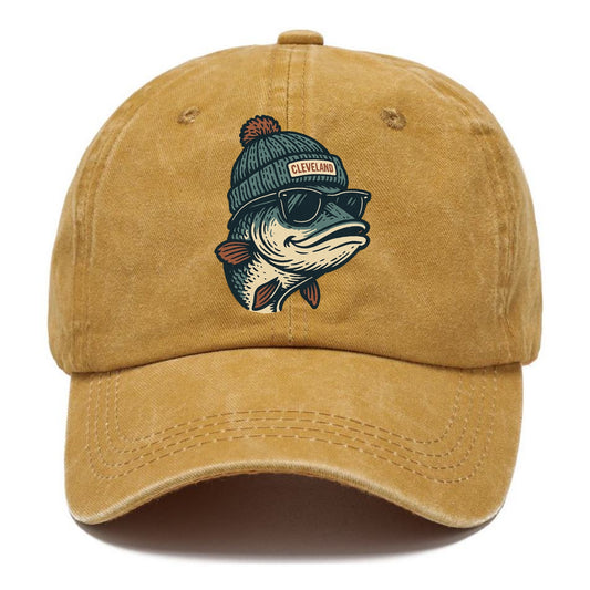 Cleveland Lake Erie Walleye wearing Cleveland beanie with pom pom and wayfarer - Classic Cap