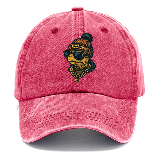 Tucson Desert Tortoise wearing Tucson beanie with pom pom and wayfarer sunglasses - Classic Cap