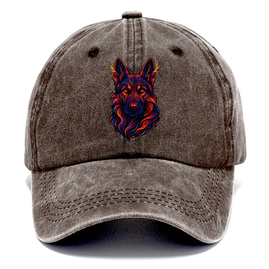 Alert German Shepherd with cyber circuit patterns in the fur, neon orange and black - Classic Cap