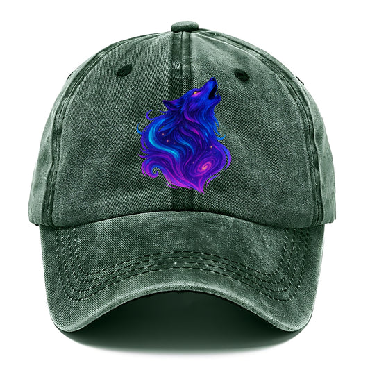 Noble wolf with flowing fur that transforms into aurora borealis streams, cyan and - Classic Cap