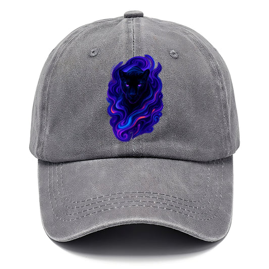 Sleek black panther emerging from swirls of deep purple and electric blue, - Classic Cap