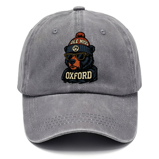 Oxford Black Bear wearing Ole Miss beanie with rebel patch - Classic Cap