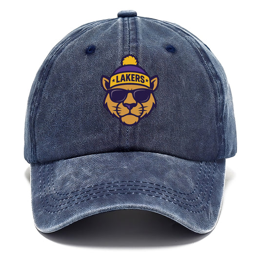 LA Mountain Lion wearing Lakers purple and gold beanie with championship stars and - Classic Cap