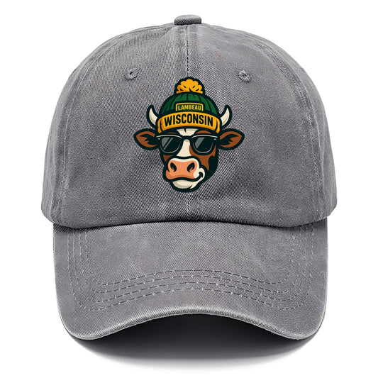 Wisconsin Cow wearing Packers beanie with Lambeau patch and wayfarer sunglasses - Classic Cap