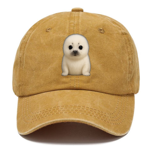 Baby Harp Seal - pure white fluffy fur, enormous dark eyes, front-facing, iconic cute - Classic Cap