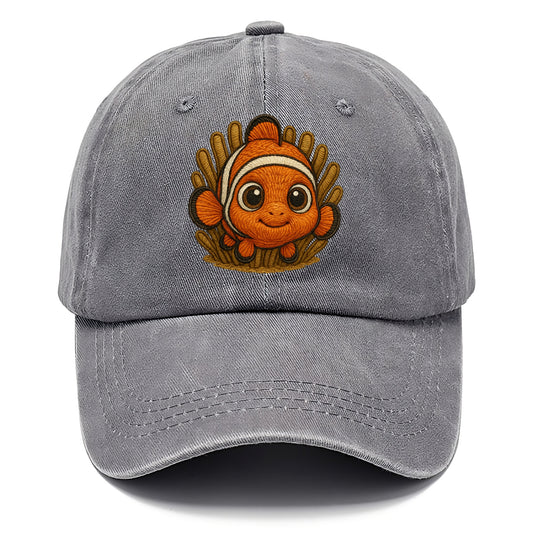 Baby Clownfish - orange with white stripes, big round eyes, front-facing in anemone, - Classic Cap