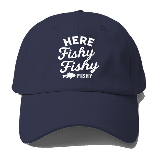 Retro Fishing Here Fishy Design Baseball Cap For Big Heads