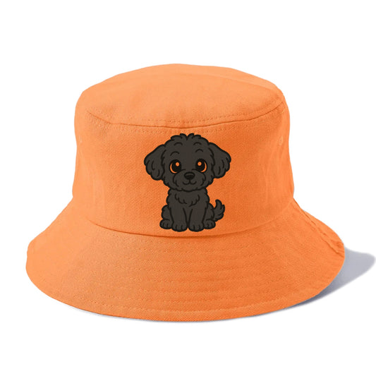 Black Maltipoo Black Curly Sitting Pose Portrait Design Bucket Hat