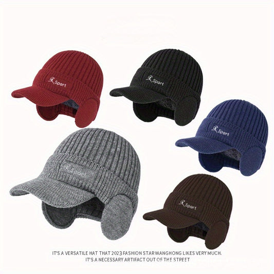 Men's Colorblock Beanie Winter Ear Flap Hat - Thermal Thickened Fleece Lined Skull Cap