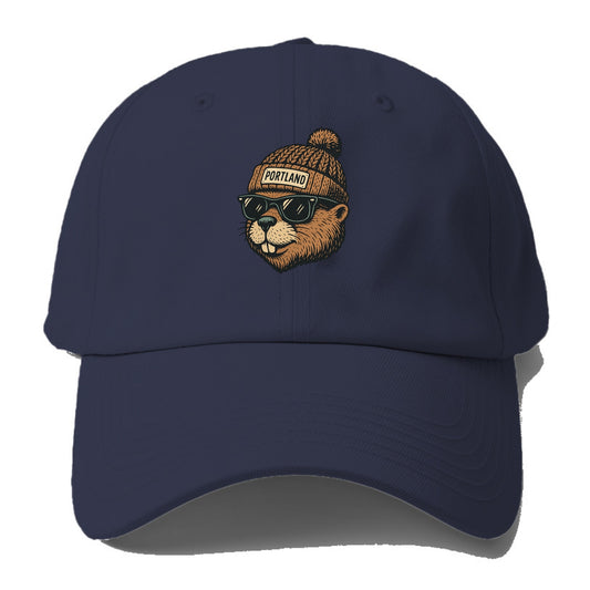 Portland Beaver wearing Portland beanie with pom pom and wayfarer sunglasses - Baseball Cap