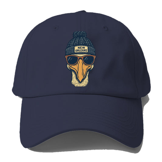 New Orleans Pelican wearing New Orleans beanie with pom pom and wayfarer sunglasses - Baseball Cap