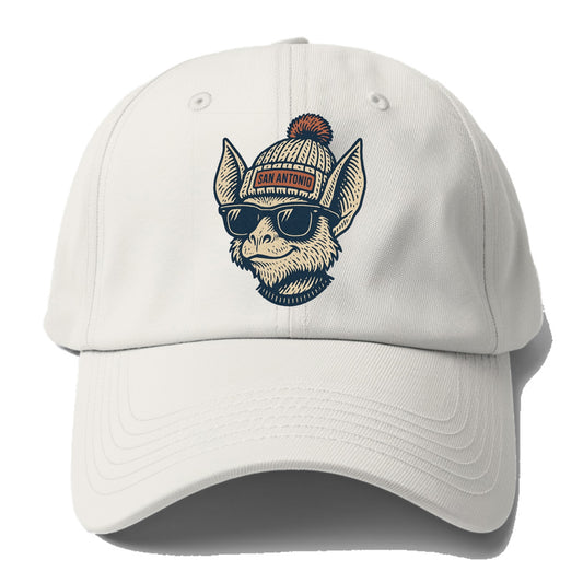 San Antonio Bat wearing San Antonio beanie with pom pom and wayfarer sunglasses - Baseball Cap