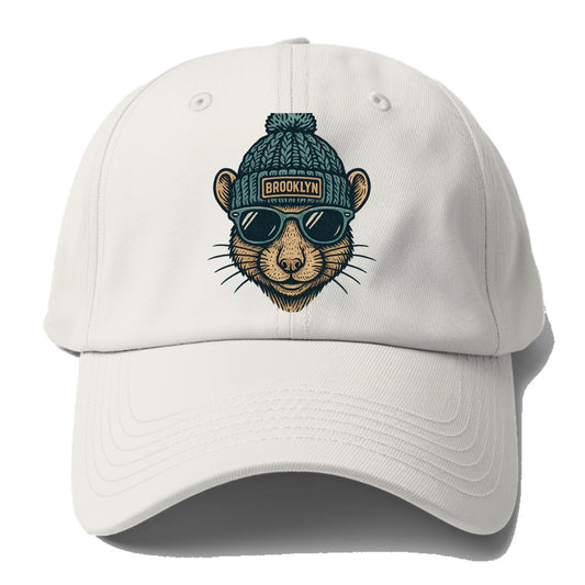NYC Rat wearing Brooklyn beanie with pom pom and wayfarer sunglasses - Baseball Cap