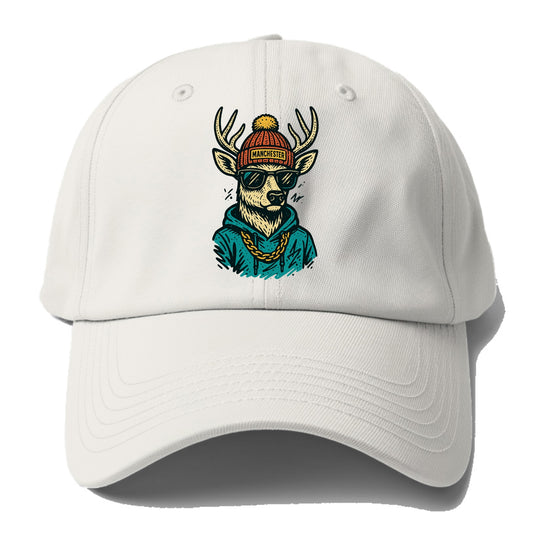New Hampshire White-tailed Deer wearing Manchester beanie with pom pom and wayfarer - Baseball Cap