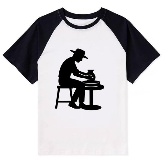 Potter shaping clay on wheel - Contrast Raglan T-shirt