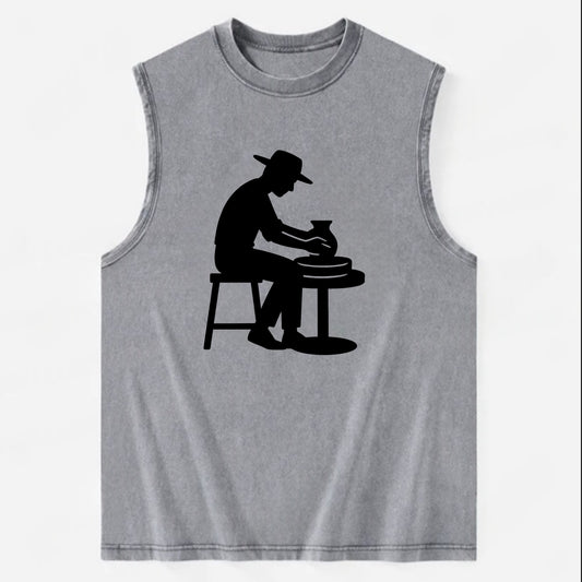 Potter shaping clay on wheel - Vintage Washed Tank
