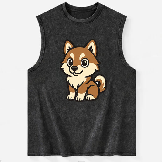 Pomsky - Pomeranian-Husky mix sitting pose - Vintage Washed Tank