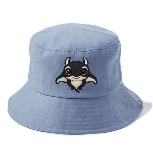 Baby Manta Ray - dark with white markings, cephalic fins, gentle eyes, front-facing, - Bucket Hat
