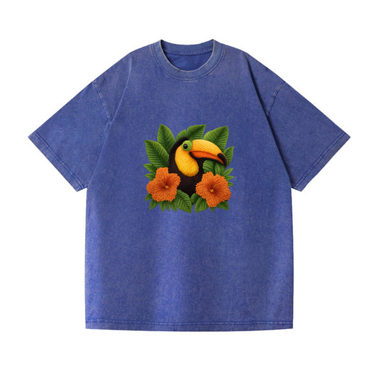 Sombrero de pescador con diseño de tucán tropical y flores de paraíso