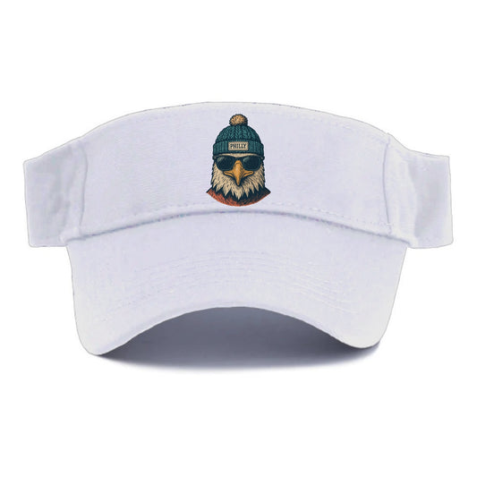 Philadelphia Eagle wearing Philly beanie with pom pom and wayfarer sunglasses - Visor