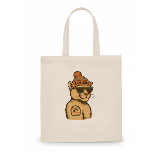 San Jose Mountain Lion wearing San Jose beanie with pom pom and wayfarer sunglasses - Tote Bag