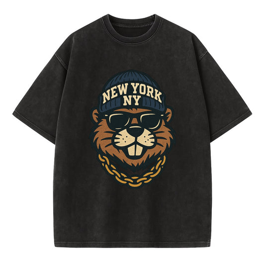 {animal:beaver,locationText:NEW YORK,initials:NY,beanieColor:navy, - Vintage T-shirt