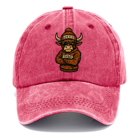 Austin Bevo wearing Texas beanie with longhorn patch - Baseball Cap