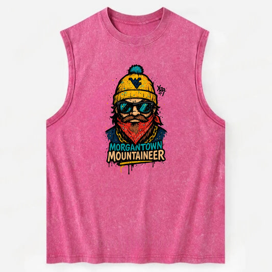 Morgantown Mountaineer wearing West Virginia beanie with WV patch - Vintage Washed Tank
