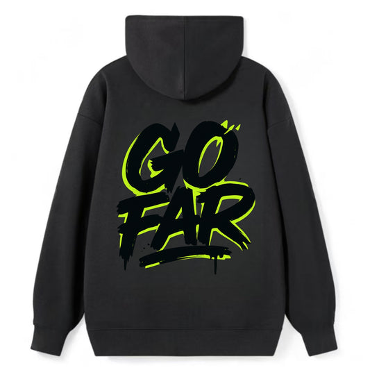 Bold typography design - GO FAR - distance goals, pushing limits - Classic Pullover Hoodie