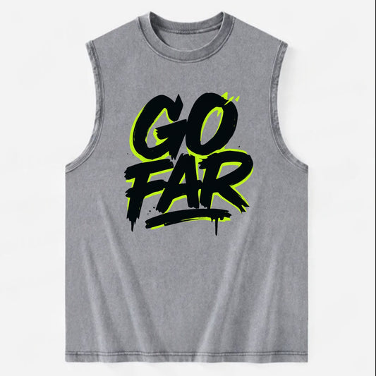 Bold typography design - GO FAR - distance goals, pushing limits - Vintage Washed Tank